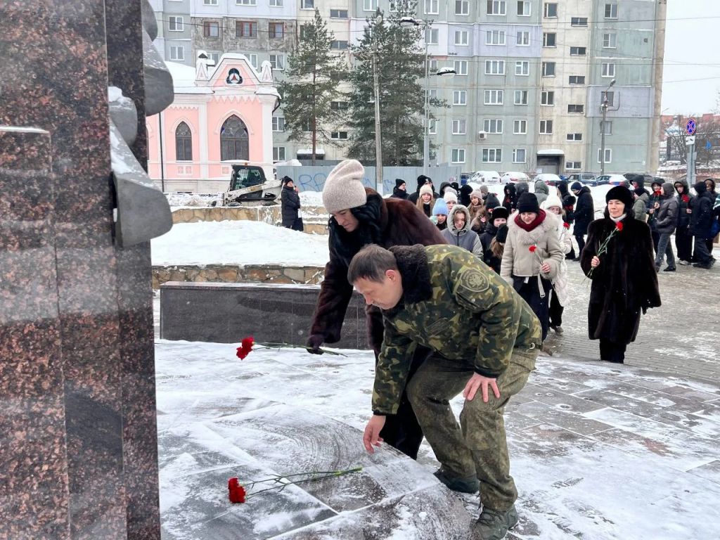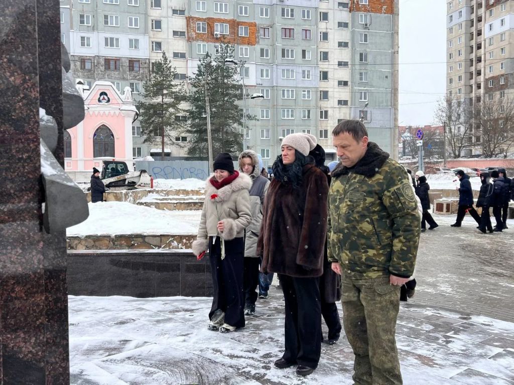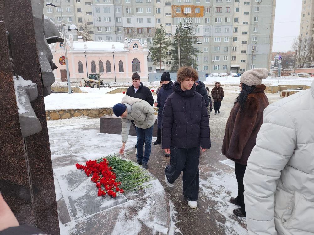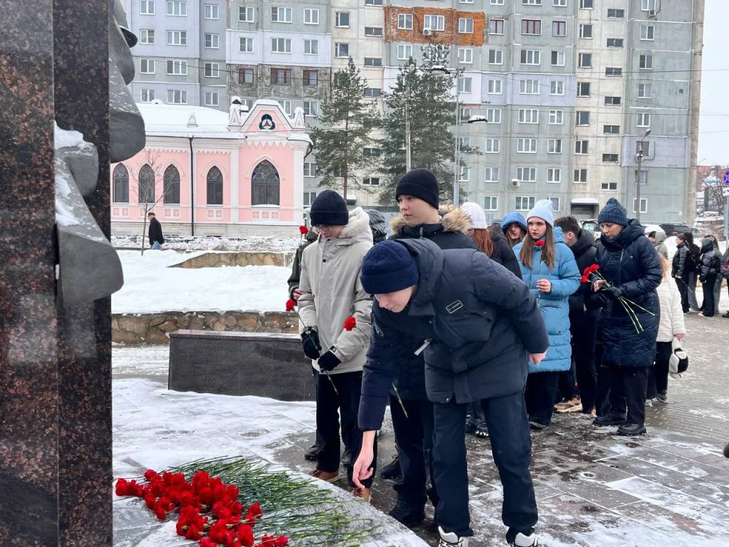 По окончанию Урока мужества, представитель ветеранской организации, преподаватели и школьники возложили цветы к памятнику «Тулякам погибшим в локальных войнах и военных конфликтах».