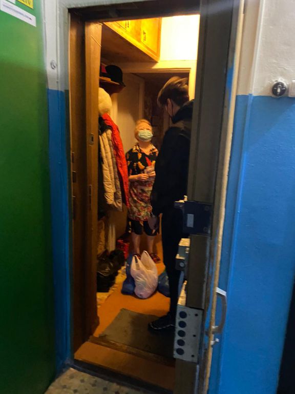 Член молодежной организации "Российского Союза ветеранов Афганистана" - "Наследие" Иван Альховик доставляет продукты вдове участника войны в Афганистане .