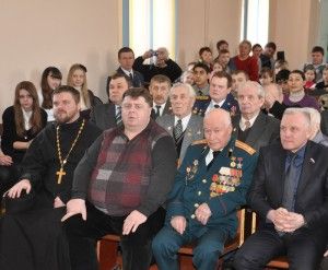 В этот раз на встречу, состоявшуюся 19 февраля, пришли ветераны Великой Отечественной войны А.Ф.Сахаров, В.А.Трофимов, глава МО Белевский район М.И.Бочаров, глава МО г.Белев Ю.М.Холин, председатель районного Совета ветеранов войны, труда, Вооруженных сил и правоохранительных органов С.Н.Борисов, председатель местного отделения Союза воинов-афганцев А.И.Решетин, белевские ветераны-железнодорожники, участники локальных войн разных лет, учащиеся школ.