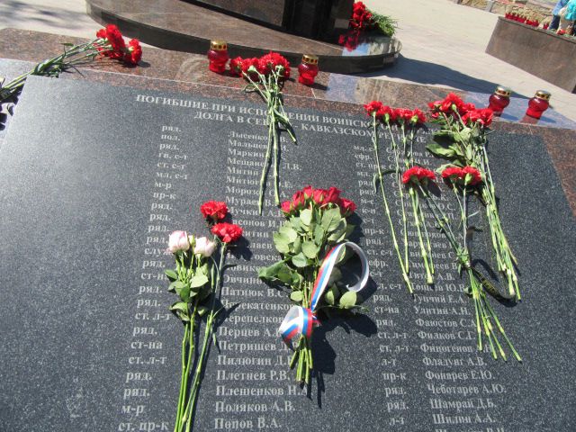 Участники митинга почтили память погибших военнослужащих минутой молчания и возложили цветы и венки к памятнику «Тулякам, погибшим в локальных войнах и военных конфликтах».