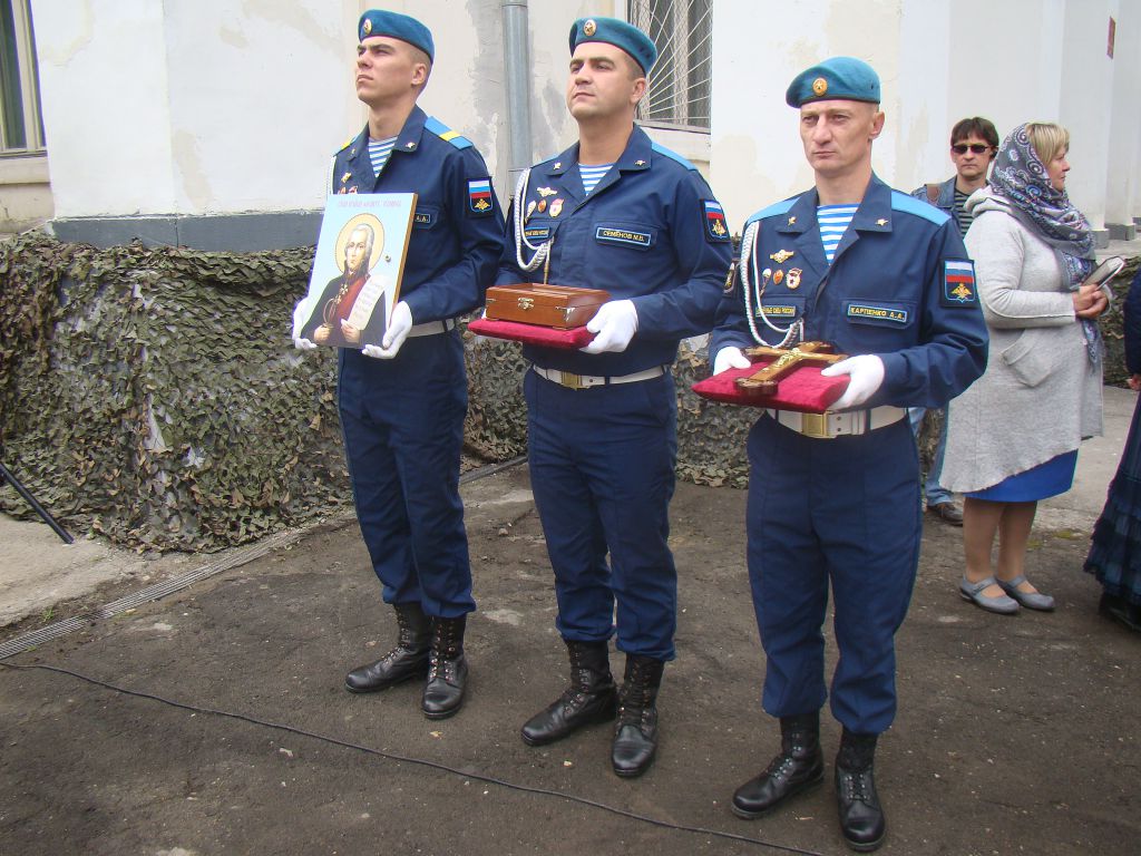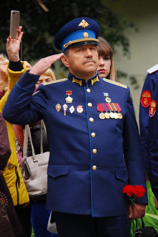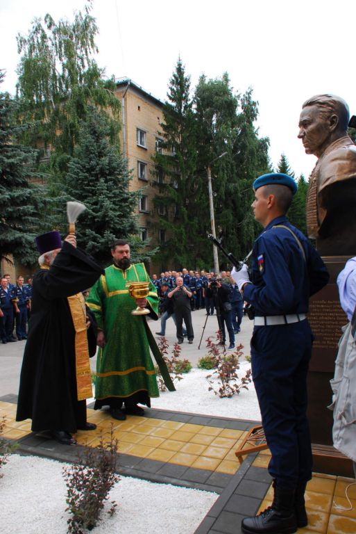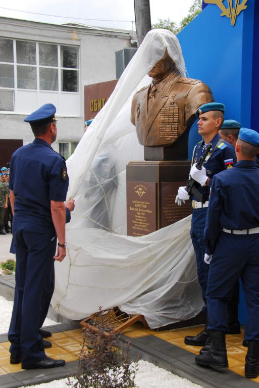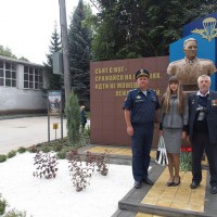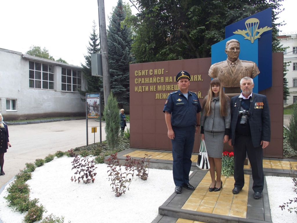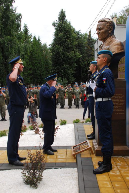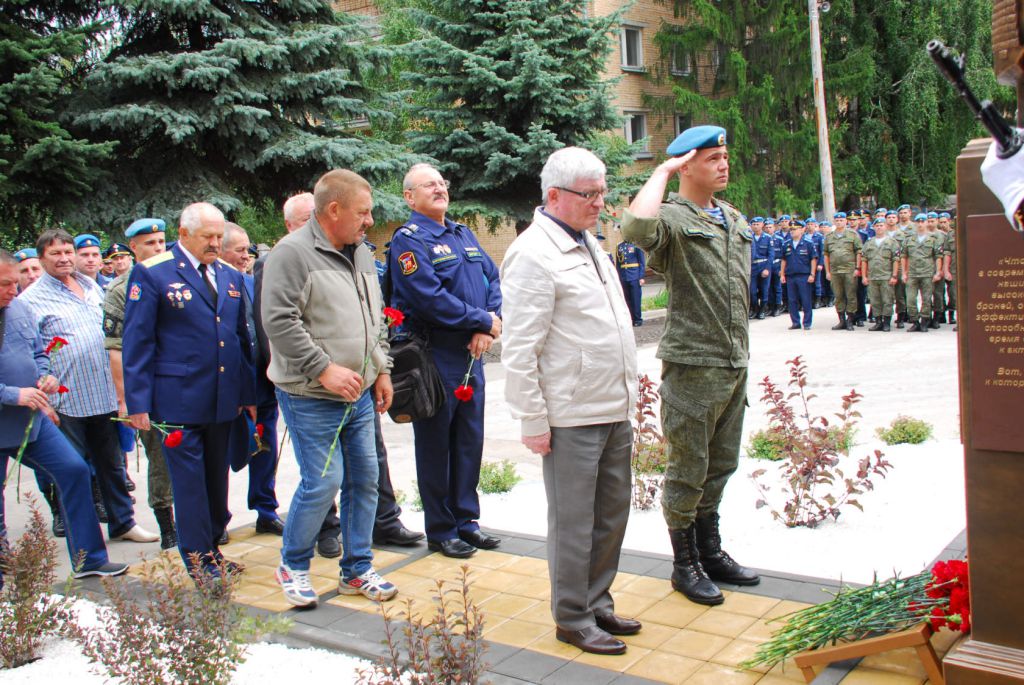 Затем командир дивизии гвардии генерал-майор П. Кирси и ветеран ВДВ и дивизии, ветеран Великой Отечественной войны гвардии старший прапорщик в отставке Д. Евдокимов сняли покрывало с памятника; собравшиеся возложили живые цветы к постаменту памятника.