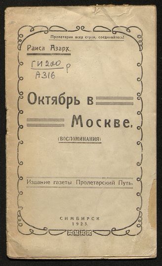Октябрь в Москве: Воспоминания. – Симбирск: Симбирск, 1923. – 25 с.