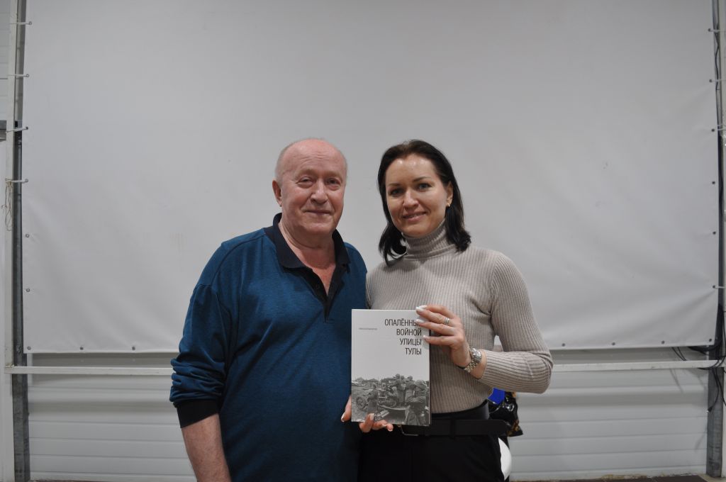 По окончании встречи старший методист Центра дополнительного образования МАРИНА КОРНЕЙЧУК получила в подарок авторскую книгу «ОПАЛЁННЫЕ ВОЙНОЙ УЛИЦЫ ТУЛЫ».