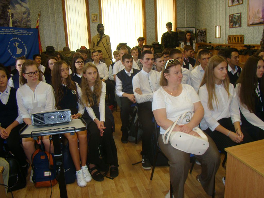 03.09.2019 в Зале Патриотики Тульской региональной организации ООО РСВА прошёл Урок Мужества для учащихся 9-х классов Центра образования № 18 Тулы имени Героя Советского Союза Е. Ф. Волкова.
