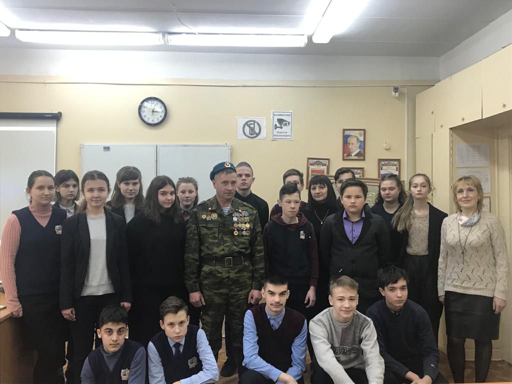10 февраля 2021года в школе №7 г.Щекино совместно с сотрудниками Щекинской центральной библиотеки Стахановой И.Н. и Ломоносовой П.А.состоялась встреча учащихся 8 класса с ветераном боевых действий в Афганистане Булыниным В.С., посвященная 32-ой годовщине окончания войны и вывода Советских войск из Демократической Республики Афганистан (1979-1989г.г.)