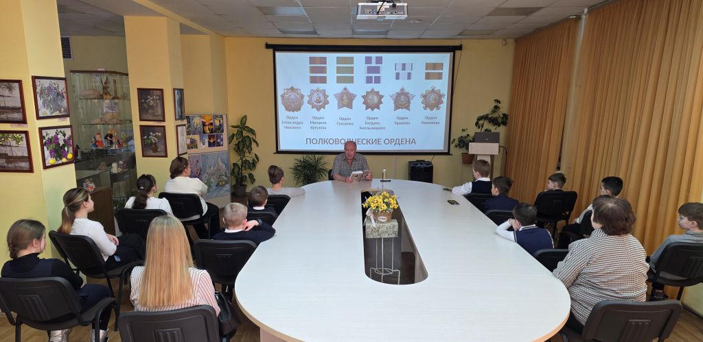 Писатель подробно рассказал о великих русских полководцах, чьими именами названы ордена Великой Отечественной войны, о самих орденах, ответил на многочисленные вопросы.