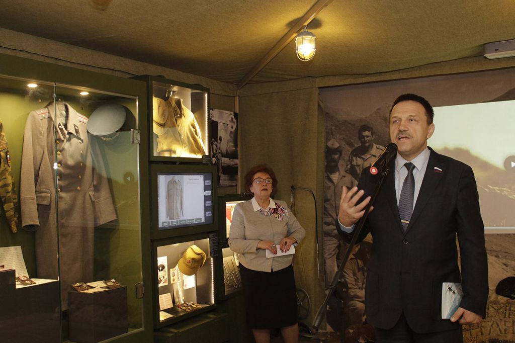 Депутат Тульской областной Думы, председатель правления ТРО ООО «Российский Союз ветеранов Афганистана» Алексей Иванович Альховик рассказал о том, что в музей было передано более 3000 экспонатов, в постоянную экспозицию вошло около 300 из них. Поблагодарил музейное объединение за организацию экспозиции, в которой переданные тульской ветеранской организацией Афганистана предметы нашли свое место.
