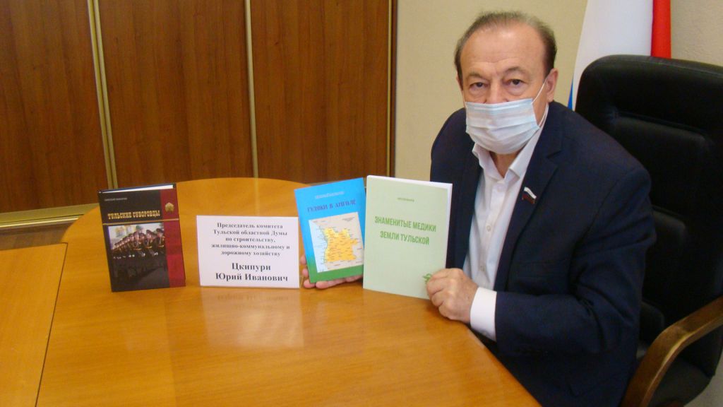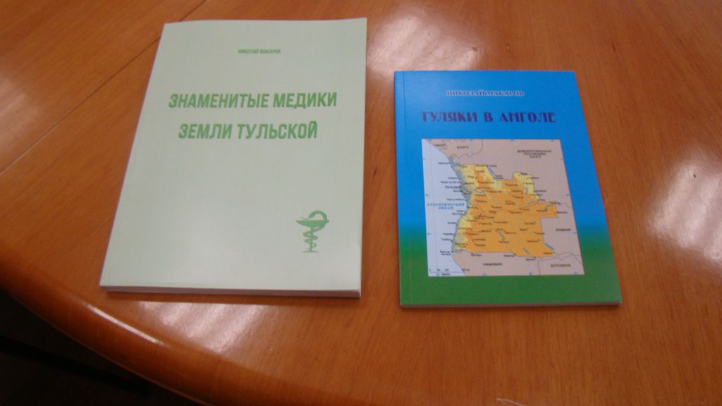 Писатель Н. Макаров рассказал о своей творческой деятельности и подарил Ю. Цкипури рабочий вариант книги «Знаменитые медики земли тульской» (2-е издание, с иллюстрациями) и книгу «Туляки в Анголе», помощнице депутата – книгу «Тульские суворовцы».