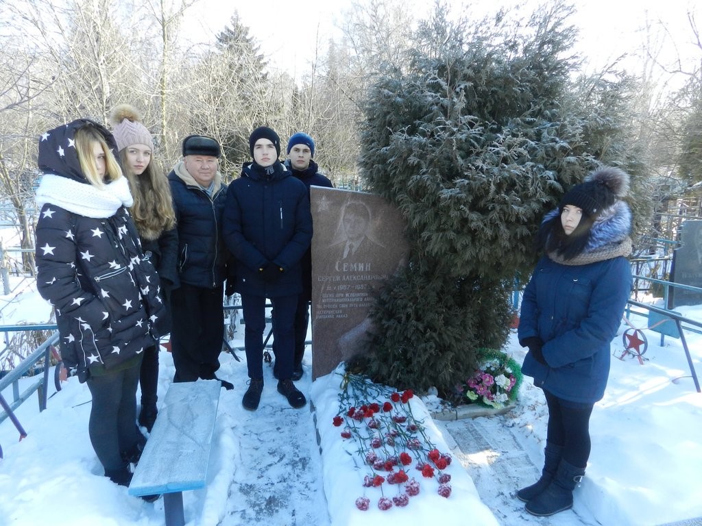 15 февраля 2018 года в МБОУ «СОШ № 2» прошёл вечер памяти россиян, исполнявших служебный долг за пределами Отечества. Почётными гостями мероприятия, пришедшими отдать дань памяти нашим героическим землякам, стали заместитель главы администрации муниципального образования город Новомосковск Наталия Анатольевна Слободяник, председатель комитета по физической культуре и спорту Николай Николаевич Ивашков, консультант комитета по образованию Татьяна Анатольевна Крышнёва, члены «Российского Союза ветеранов Афганистана» Александр Николаевич Фатальников и Александр Владимирович Белюгов, Борис Оскарович Порат, родители выпускника нашей школы, погибшего при исполнении интернационального долга в Демократической Республике Афганистан, Сергея Сёмина – Александр Сергеевич и Татьяна Яковлевна Сёмины, его одноклассники.
